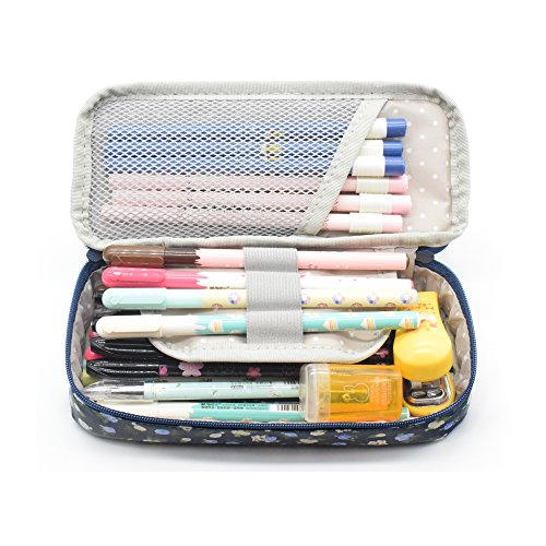 Pencil Case, Twinkle Club Pen Bag Makeup Pouch Zipper Box Office Organizer Rose Floral, Blue