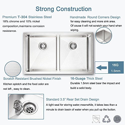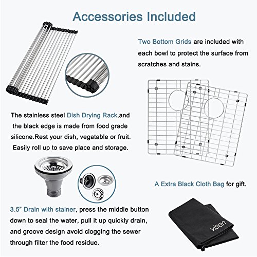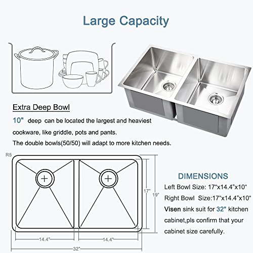 Visen VRR3219A Stainless Steel Double Kitchen Sink, Double Bowl with X Font Design, Easy to Clean, Heavy Duty, 32" L