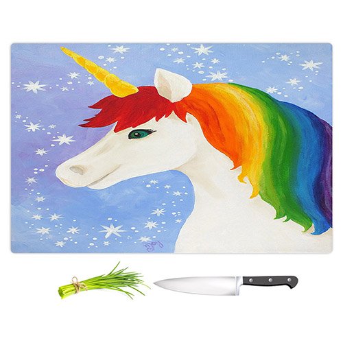 DiaNoche Designs CB-nJoyArtRainbowUnicornl2 Njoy Art-Rainbow Unicorn l Cutting Boards from l, Large 15" x 11"