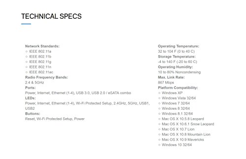 Using the Linksys Range Extender Max, you can easily extend the range of your existing wireless router to create a strong Wi-Fi signal for all the devices in and around your home, including smartphones, tablets, ultra books, and more. The RE6500 extends the wireless coverage area by up to 10,000 square feet to eliminate dead zones. Greater coverage allows you to enjoy fast Wi-Fi speeds on your laptop or tablet--even if you're outside on the patio or in the backyard. Thanks to high-speed wireless-AC technology, the RE6500 creates Wi-Fi speeds that are up to three times faster than wireless-N. You also get double the channel bandwidth, with 80MHz wide channels providing more room for more data to flow faster than ever. With this extra speed, you can stream HD-quality videos and play online games seamlessly without interruptions or lag. The RE6500 features simultaneous dual bands, which means it transmits at both the 2.4GHz and 5GHz frequencies at the same time. It extends 2.4 and 5GHz Wi-Fi up to N300 Mbps + AC867 Mbps and reduces interference. So no matter which band your wireless devices use, they'll automatically connect to the best available band for the fastest possible performance.Feature
