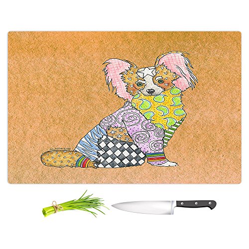 DiaNoche Designs CB-MarleyUngaroPapillonTan2 Artist Marley Ungaro-Papillon Tan Cutting Boards from, Large 15" x 11"