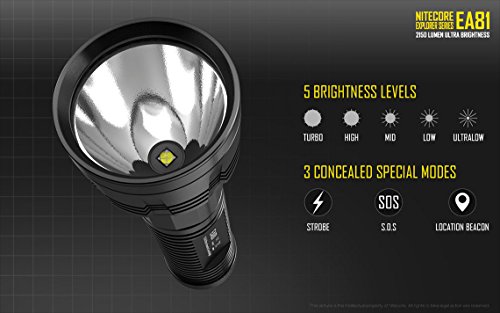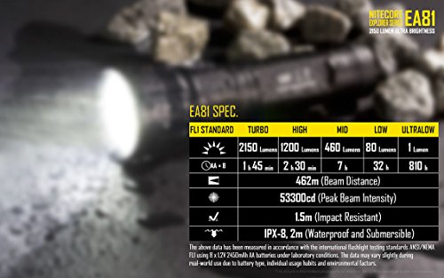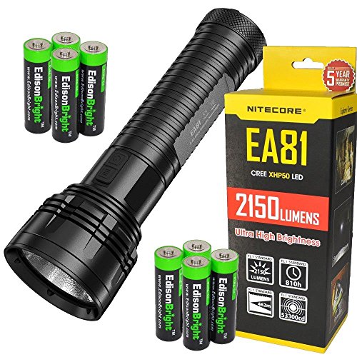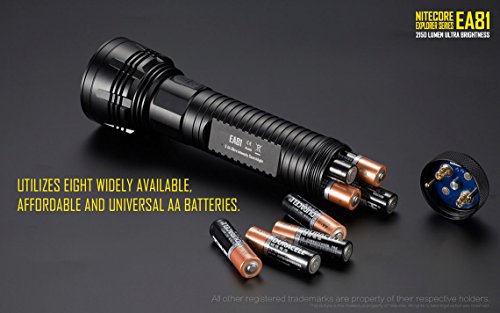 NITECORE EA81 2150 CAVEMAN LUMEN CREE XHP50 LED COMPACT AA BATTERY FLASHLIGHT/SEARCHLIGHT WITH HOLSTER & EIGHT EDISONBRIGHT AA ALKALINE BATTERIES