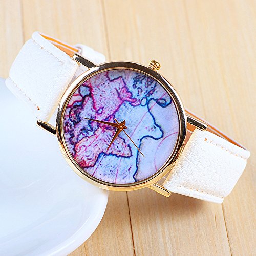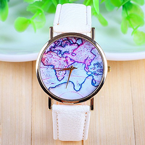 Lowpricenice 3 Colors New Arrival World Map Leather Strap Watches?(White)