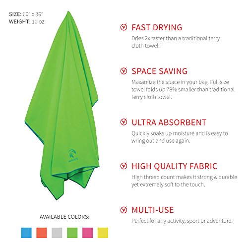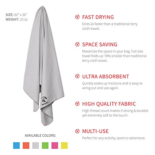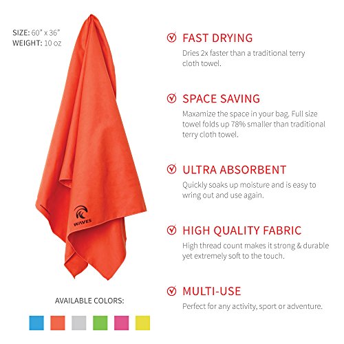 -. Title : Waves Gear Quick Drying Microfiber Beach Towel, Compact Travel and Camping Towel, X-Large