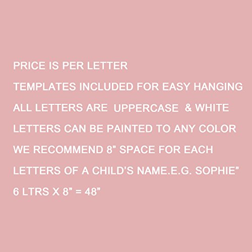 - We recommend 8" space for each letters of a child's name. For example, "Sophie", 6 ltrs x 8" = 48" in width. Each letter is approx. 5" in width, length varies between 5" - 11", and 5/8" in thickness.
