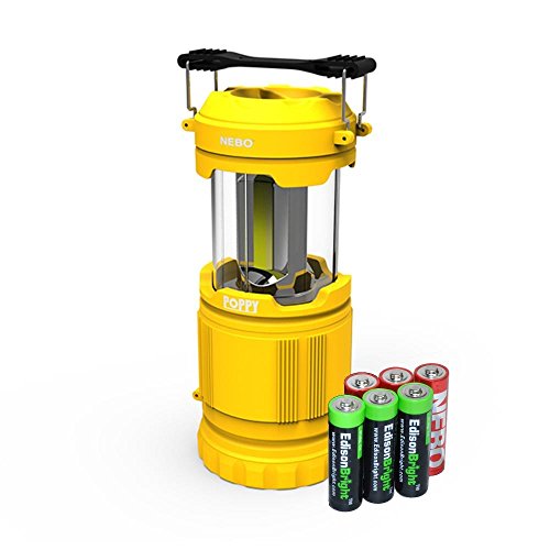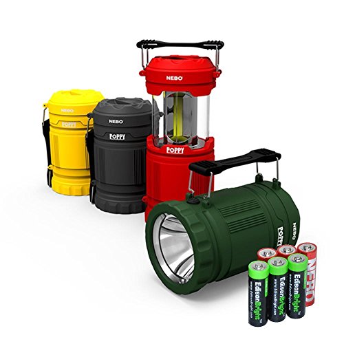 Poppy is a combination 300 lumen C?O?B LED lantern and bright LED spot light. Poppy is the perfect light for indoor or outdoor use when versatility and powerful lighting are critical. With a rubberized impact-resistant body, Poppy is both rugged and soft to the touch. Poppy easily changes from spot light to lantern with just a slide of its top, revealing a full 360º C?O?B lantern. The handle is designed to easily adjust to conveniently serve both light modes. LIGHT ? High-power 300 lumen C?O?B LED lantern ? High-power 120 lumen LED spot light LIGHT MODES ? C?O?B lantern HIGH (300 lumens) - 7.5 hours / 15 meters LOW (35 lumens) - 40 hours / 6 meters ? Spot-light HIGH (120 lumens) - 18 hours / 120 meters LOW (90 lumens) - 38 meters DESIGN ? Fully dimmable ? Rubberized body design; water and impact-resistant ? Adjustable handle ? Power memory setting ? Direct-to-red feature OPERATION ? Side-positioned, ON/OFF button BATTERIES ? Powered by 3 AA batteries (included) SPECS ? 0.65 lbs. ? Height: Closed - 5.46" / Open - 7.79" ? Diameter: 3.58" Bundle comes with 3 X EdisonBright AA batteries in addition to Nebo batteries installed in light 0 |