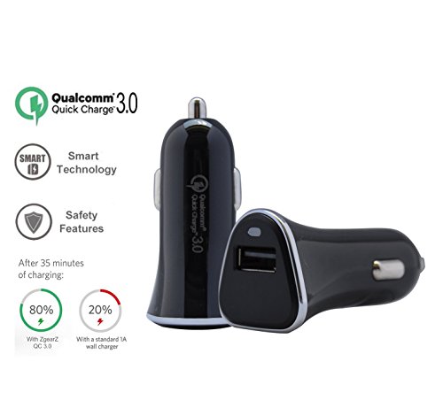 -. Feature : Qualcomm Quick Charge 3.0: The latest, fastest and most efficient USB charging technology in the world. Up to 4X faster than standard chargers, able to charge compatible devices to 80% in just 35 minutes. 35% faster charging speed compared with Quick Charge 2.0 Charger / Full Compatibility: Backwards compatible with all versions of Quick Charge Technology (1.0, 2.0 & 3.0). Also charges all non-Quick Charge phones and tablets at maximum speed (up to 5 volts / 2.4A Max) with Auto Detect Technology. This product charges iPhones and iPads at their full speed even without support of Qualcomm Quick Charge 2.0 Technology / Universal compatibility: Works with all types of USB-powered devices, such as iOS and Android devices, and compatible with all 12-24V car sockets (USB charging cable not included). / Built-in LED lights up whenever car charger is connected. Safety Guarantee: Multiple built-in safeguards fully protect against over-current, overcharging and overheating for safe and fast charging. / YOU WANT IT FAST WITH GREAT AMAZON CUSTOMER SUPPORT? PORTABLE SOLAR SHOP is ZgearZ Authorized Seller through fulfillment by AMAZON. All of PORTABLE SOLAR SHOP's products are shipped from the USA - Fast shipping and easy return policy through AMAZON. 30 DAYS NO RISK: If you are not absolutely 100% satisfied with the product, just return the product.