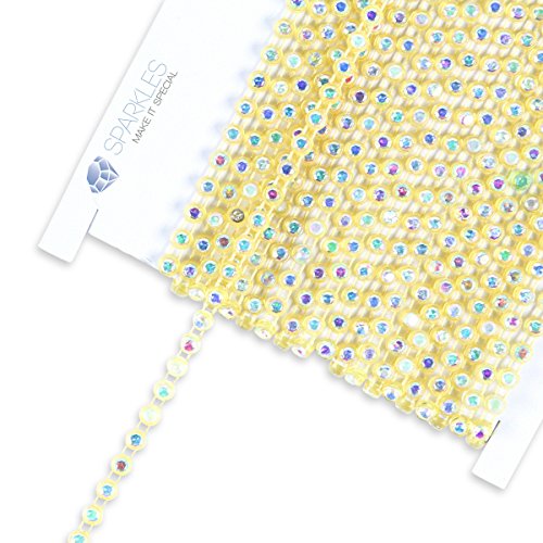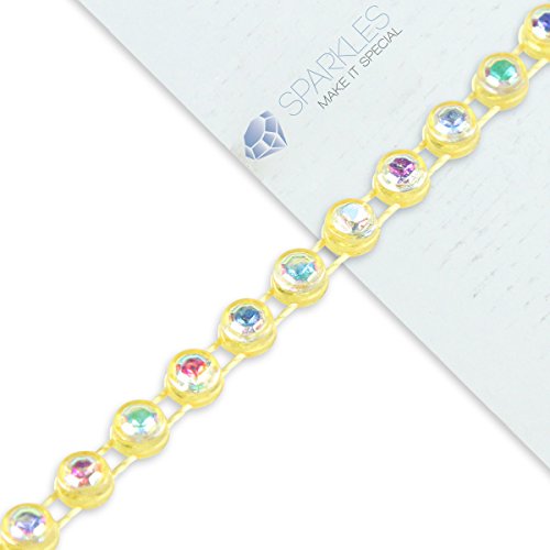 Sparkles Make It Special 1 Row SS10 AB Crystal Rhinestone Banding - 10 Yard (30 Feet) Trim Chain Wrap Spool Roll - Wedding Decoration, Cake Banding, Arts & Crafts - Gold