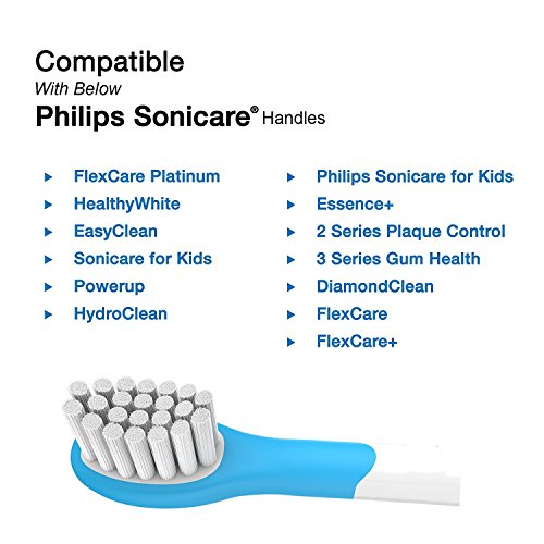HIGH COMPATIBILITY - Snap-on design replacement brush heads easily fit Philips Sonicare for Kids, and other Electric Sonicare Toothbrush Handles like: DiamondClean, FlexCare, FlexCare+, FlexCare Platinum, EasyClean, HealthyWhite, Sonicare 3 Series Gum Health, HydroClean, Sonicare 2 Series Plaque Control, PowerUp.