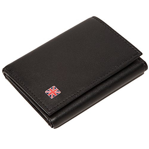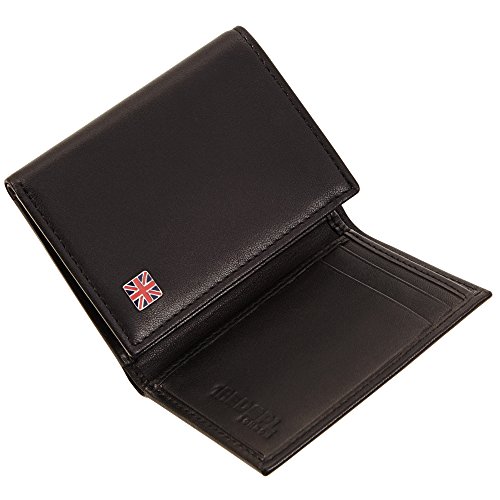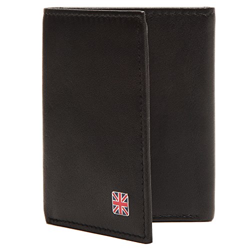 -. Feature : Measures 4" x 3 1/4" x 1/2" / Hand crafted folded edge construction with edge stitch / 4 interior credit card pockets and a center bill compartment / 2 interior hidden pockets and 1 ID window / Union Jack inspired enamel inlay