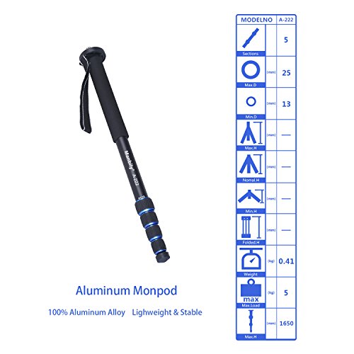A-222 +M-1 Base Tripod 1650mm Alumninum Camera Unipod Monopod Flip Lock w/3 Legs Base Tripod For Canon Nikon DSLR DV