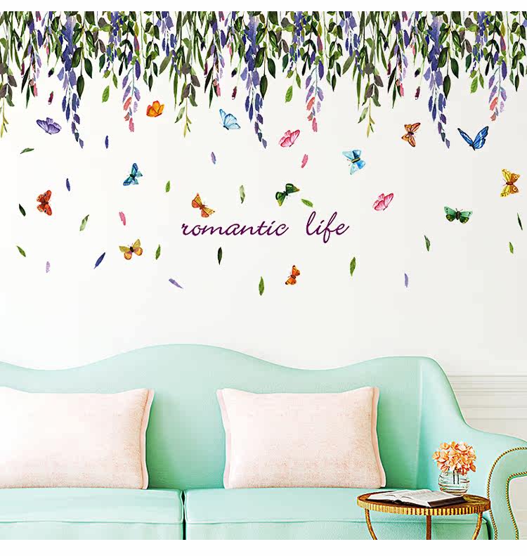 可移除墙贴绿叶藤蔓忆夏田园客厅卧室床头电视背景墙壁贴纸贴画