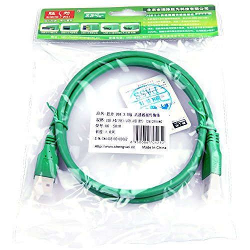 Shengwei USB 3.0 Cable Type A Male to Male for Data Transfer for Hard-drive Enclosures Printers Modems Cameras and other USB-compatible devices 3.3 Feet (1M), Green