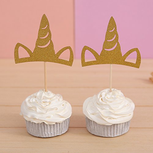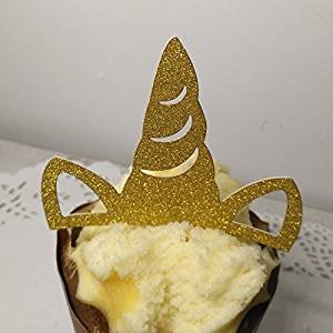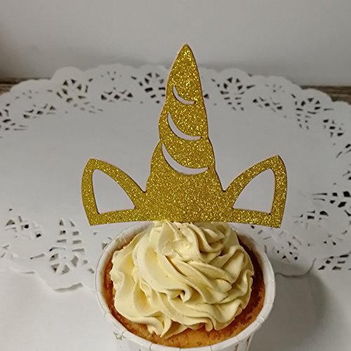 Set of 24 Golden Unicorn Horn Cupcake Toppers Kids' Unicorn Party Decors - by Giuffi