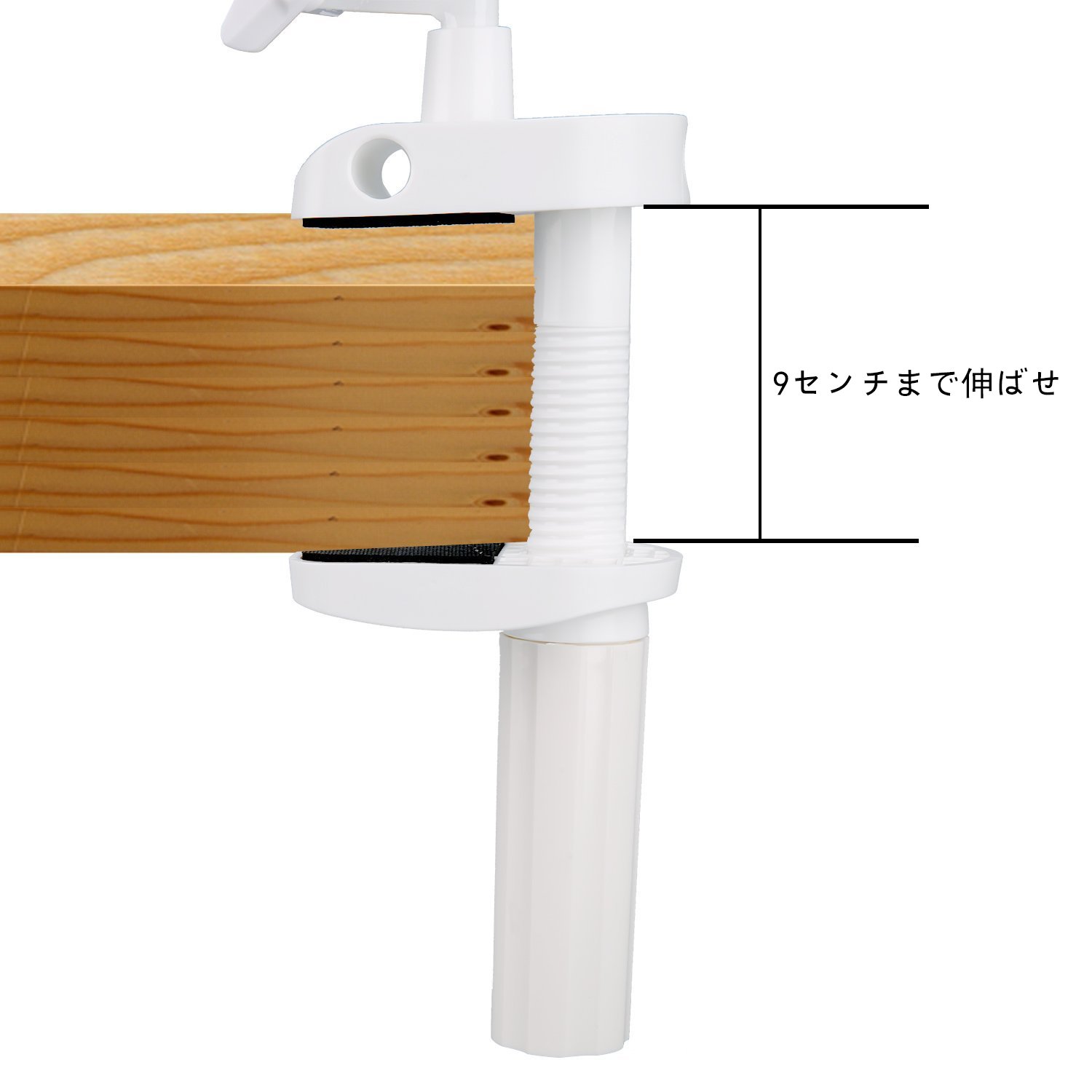 Instead, it adopts a spiral type clamp that is easy to operate, and the area of contact with the desk etc. becomes slightly wider.