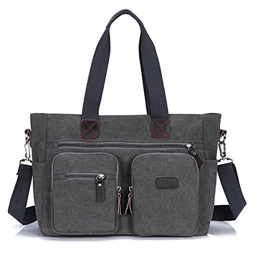 -. Feature : MATERIAL: Durable 100% cotton washed canvas. / CLOSURE: Top Zipper Closure. / DIMENSIONS: 13.78''(L) x 3.94''(W) x 11.02''(H), fits up to 14" laptops, easy to carry A4 size book. / POCKETS: 1 Main compartment with 1 Key hook, 1 Tablets pocket, 1 Zipper pocket, 4 Open Item Pockets, 2 Pen slots. 3 Exterior open pockets, 4 Exterior zipper pocket. / FEATURES: Decorative silver-tone hardware, detachable shoulder strap and so many pockets. Easily carry your book, phone, wallet, cosmetic, IPAD, umbrella and other daily things.