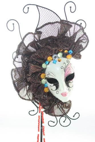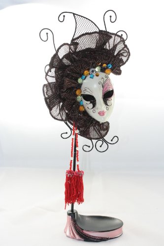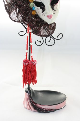 -. Title : 13.4" Tall Venetian Multicolor Beads Delicate Masquerade Mask Jewelry Stand w/ Red Tassel