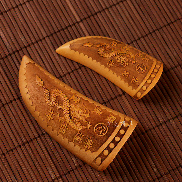 纯天然桃木羊角圣杯,杯体形如弯月,杯身浮雕龙纹 左雕:天地阴阳生万物 右雕:佛道祖神显威灵 双面合并为“生财” |
