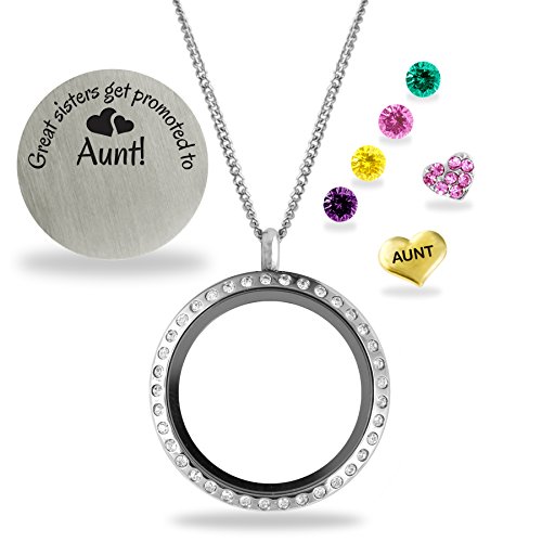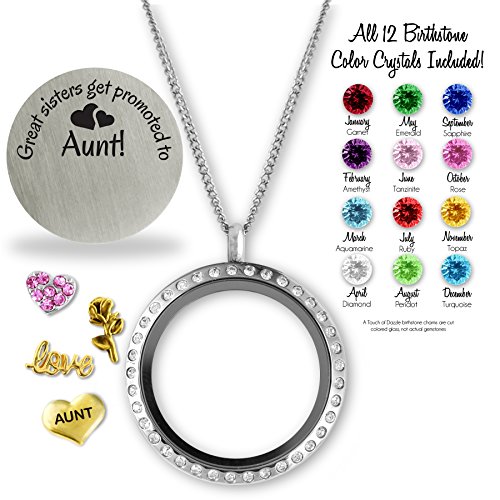 -. Feature : Excellent quality stainless steel and glass floating locket necklace, 22 inch chain with 2 inch extender. / Great Sisters Get Promoted to Aunt - Exclusive engraved plate ONLY available from A Touch of Dazzle - Christmas gifts for your sister, new aunt gifts, perfect gift for aunts / Locket includes exclusively designed custom plate, charms, and birthstone color crystals presented in a beautiful gift box / Genuine quality lockets manufactured to the highest standards for long lasting enjoyment / Happy Birthday Niece gifts from aunt, and holiday Valentines Day gifts. Beautifully gift boxed in our elegant boxes