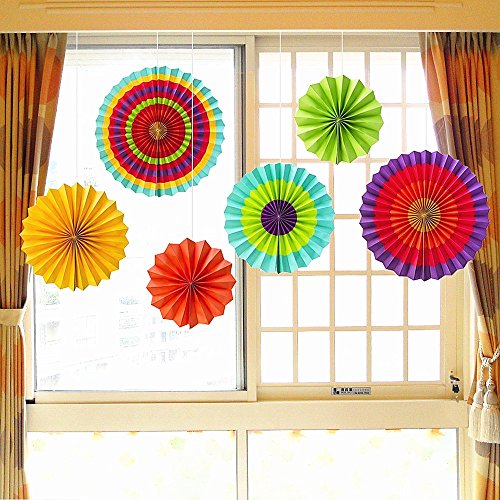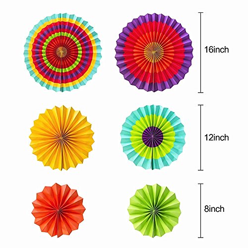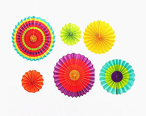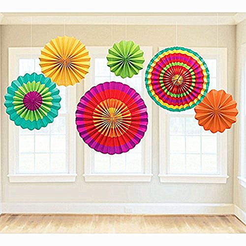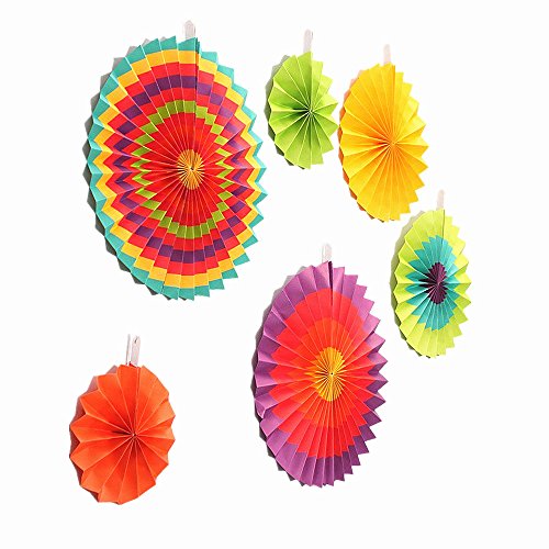 HuanX35 Set of 6 Fiesta Colorful Paper Fan Round Wheel Disc Decorations Accessory Southwestern Pattern Design Fun decoration for Birthday Parties or weddings,Activity,Home Decoration (style A)