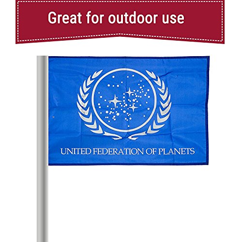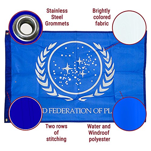 HIGH QUALITY MATERIAL lets you sport your United Federation of Planets flag with pride. Featuring durable polyester, hand stitched designs and two stainless steel grommets, this flag is sure to fly high for a really long time.