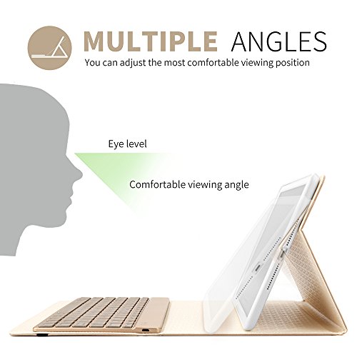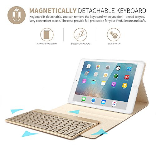 2017 New iPad 9.7 Keyboard Case, KVAGO Elegant Protective Cover with Detachable Wireless 7 Colors Back-lit Bluetooth Keyboard Keypad Case for New iPad 9.7 Tablet -Gold