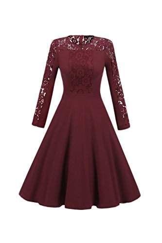 -. Title : yacun女子レースロングスリーブミディスイングワークパーティーカクテルドレス
