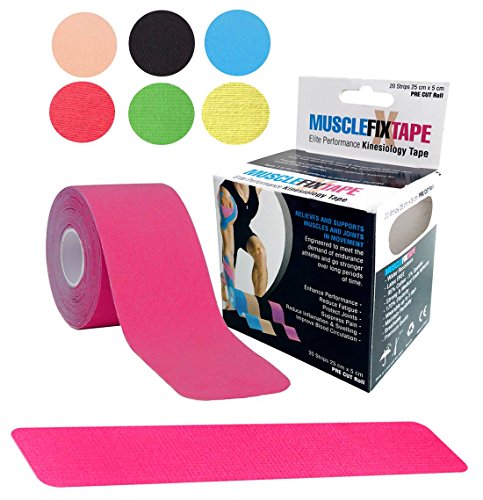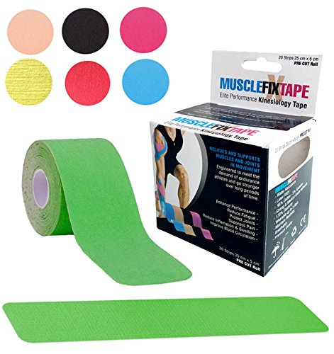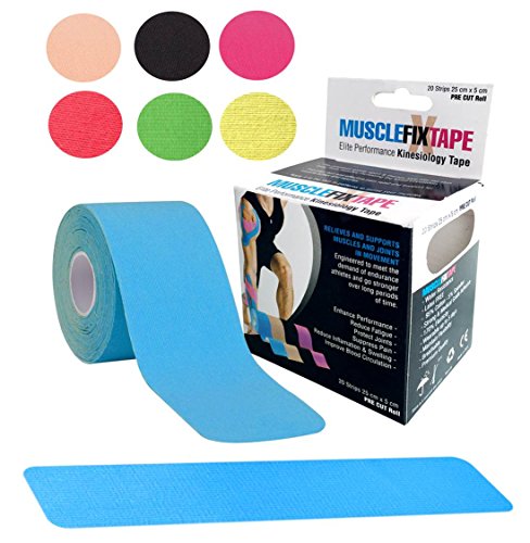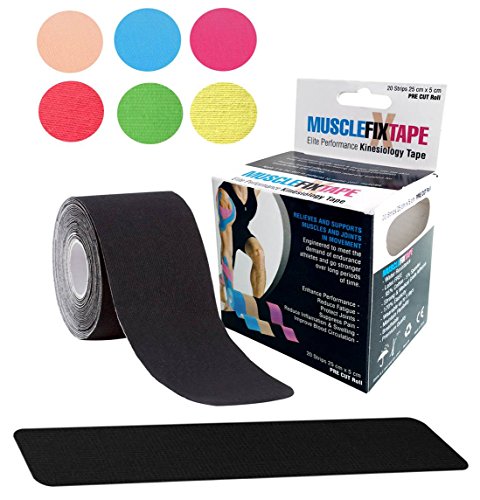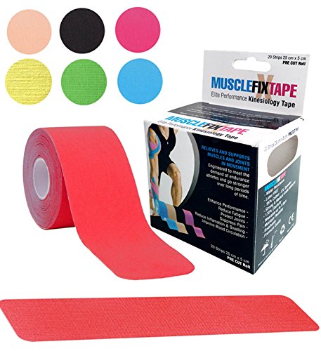 20 STRIPS 25cm x 5cm / 10in x 2in OF PREMIUM QUALITY & ENHANCING PERFORMANCE KINESIOLOGY RECOVERY PRE CUT TAPE: Muscle Fix Sports Tape lifts your skin away from muscles increasing the blood circulation, providing fast and effective pain suppression and relief, joint protection, fatigue reduction and support for muscles, ligaments and tendons aches and injuries. Ideal for shoulder, neck, elbow, lower back, knee, ankle and many others. FDA, CE and ISO Certified.