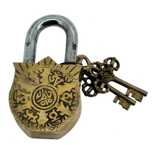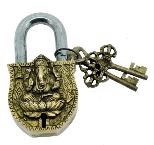 Ganesh, Ganesha, Lord of Success Handmade Tibetan Monastery Padlock, Tibetan Mantra Prayer Padlock