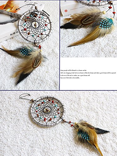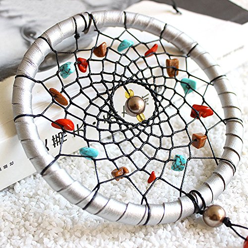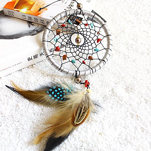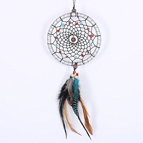 Yunko Dream Catcher Handmade Circular Net With Feathers and Beads Wall Hanging Decoration Decor Ornament Craft Gift, Silver