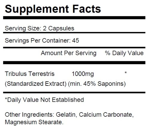 -. Feature : Tribulus Terrestris 1000mg per 2 Capsules. Tribulus Terrestris Extract Standardized to minimum 45% Saponins / This listing is for 1 bottle. Each bottle contains 90 capsules.