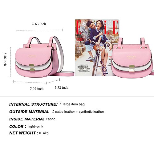 Product Description Item Type : Women Cross-BodyBags Outer Material : Cattle leather synthetic leather Lining Material : Fabric Shoulder Strap Material : Synthetic leather Available Color : Light-pink Weight : 0.40 kg (net weight) Dimension : 6.63(upper length)/7.02(lower length) * 5.46(Hight) * 3.32(Width) Inches Shoulder Strap : 43 - 46 Inches
