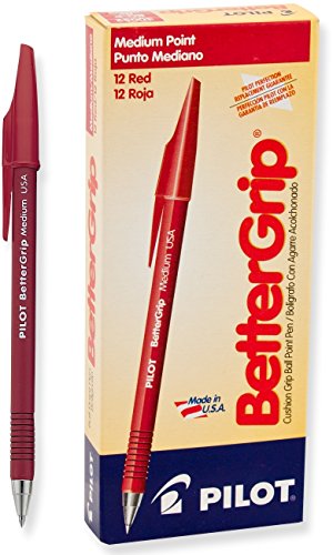 -. Title : Pilot BetterGrip Cushion Grip Ball Point Pens, Medium Point, Red Ink, Dozen Box (30052)