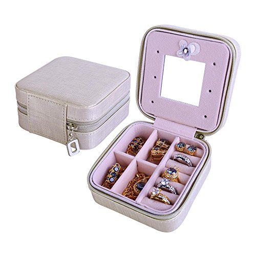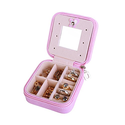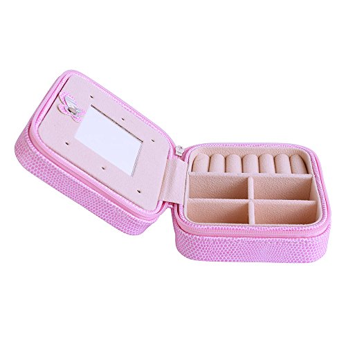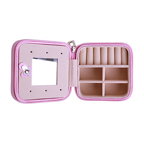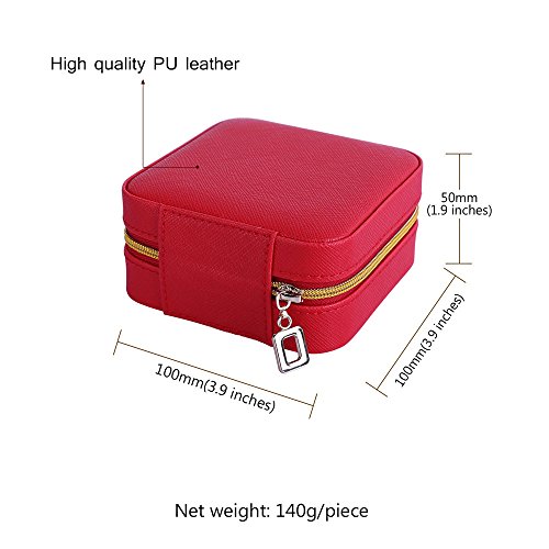 -. Feature : Material: high quality PU leather external + High Quality flannel interior / Structure: 4 parts + raw of ring rolls + a cute mirror wall. / Measurements: 100mm(L) X 100mm(W) X 50mm(H). Weight: 140g. / Great for carrying small jewelries (earrings, rings, necklace, bracelets, etc) when travel. Also the best Valentine's Gift, Birthday Gift, Christmas Gift for Your Girls. / Zippered closure with silver tone zipper pull