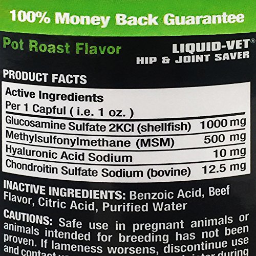 Liquid-Vet K9 Hip & Joint Saver Formulas help relieve occasional stiffness and contain the highest levels of glucosamine, MSM, hyaluronic acid, and chondroitin in a single dose. Liquid-Vet K9 Hip & Joint Saver Formulas are TASTIER, EASIER TO USE, and FASTER than pill, powder, or chewable form supplements and are the only products available in a choice of flavors for picky pets or those pets that may have allergies to specific proteins. Simply dose during mealtime with no mixing required. Guaranteed in 2 weeks or YOUR MONEY BACK.Feature