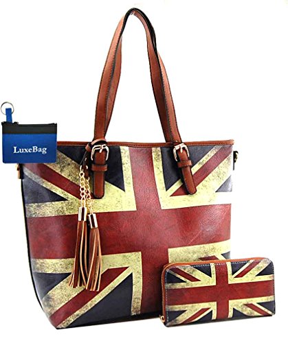 UK Union Jack Flag Large Purse Wallet Set, Vintage Great Britain Tote Style