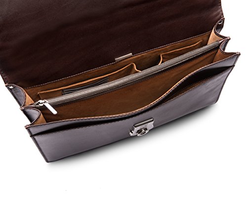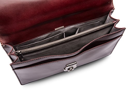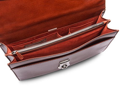 Studio : SageBrown Publisher : SageBrown Binding : Apparel Product Description Sage Brown is proud to present our exclusive new vintage leather from our tannery in Northamptonshire UK. This beautifully proportioned unisex briefcase from our Signature range is handmade and complimented with luxurious contrasting suede lining. There are four compartments of different sizes - one slip pocket at the front 2 main compartments separated by one zip pocket. The expandable sides means there is enough space to store most laptops in one of the larger compartments while inside the back compartment are three suede slip pockets for a mobile phone PDA or calculator and four leather credit card slots. For added convenience on the reverse of the bag there is a large separate pocket with zip fastening. The briefcase is finished beautifully with a hand made solid brass lock and key from The Midlands UK with a silver finish and there is also a detachable adjustable shoulder strap to carry in comfort. The really stylish way to arrive at work and impress. 0