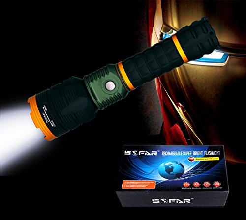 NVTED Rechargeable Super Bright LED Flashlight, Adjustable Focus, 200m Effective Light Range, Water Resistant Handheld Torch for Camping, Hiking, Riding