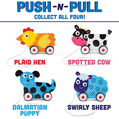 This wooden animal pal is equipped with wheels and can be whisked to and fro! Great for crawlers, walkers, and toddlers. For more fluid, fun play, we gave our push-n-pull toys a wide and steady 2.25" base that resists tipping, so push it around by hand or tug it along by the bright, 8" white cord! Suitable for ages 12m+.