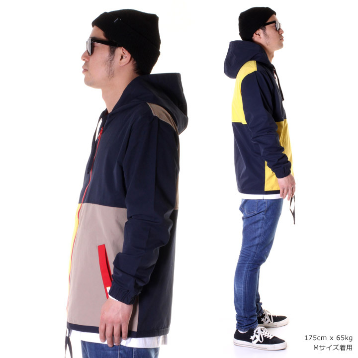 RVCAアドボケイターの一人、アンドリュー・レイノルズのシグネチャーコレクションから「BLOC COACHES」がリリース。デザイン・耐久性ともにスタンダードを上回るジャケットは、コットン/ナイロンの混紡素材を使用しているので、軽量・防風・耐水・通気・耐久性に優れており、さらに600mmの撥水加工を施してあります。マルチカラーでブロッキングされたパネルデザインにカラージップと裏地でのハイコントラストなデザインです。