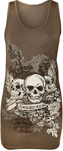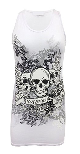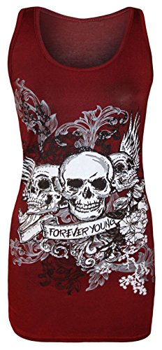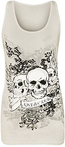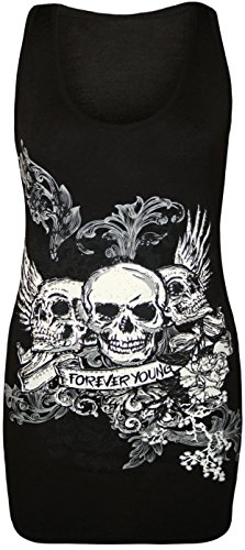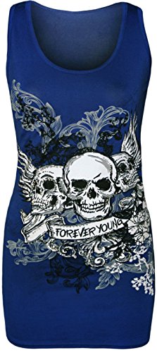 Forever Womens Skull Forever Young Print Glitter Racer Back Vest Top