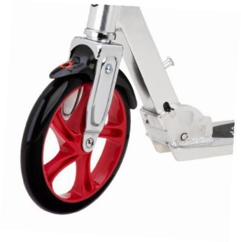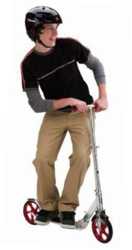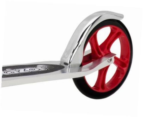 -. Brand : eXXtra Store -. Color : silver & red -. EAN : 8003431401240 -. Feature : With its extra-large urethane wheels, the A5 Lux is the smoothest ride around. / Easy to fold are ready to go / The A5 has a super strong aluminum t-tube and deck / Comfortably support riders up to 220 lb. / Recommended Age: 8+ -. IsAutographed : 0 -. IsMemorabilia : 0 -. Label : eXXtra Store -. Manufacturer : eXXtra Store -. MPN : 13013201 -. PartNumber : 13013201 -. ProductGroup : Sports -. ProductTypeName : OUTDOOR_RECREATION_PRODUCT -. Publisher : eXXtra Store -. Studio : eXXtra Store -. Title : Razor A5 Lux Kick Scooter - Silver/Red Street Student