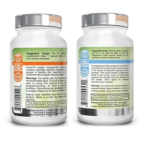 -. Binding : Health and Beauty -. Brand : Femalean -. EAN : 0849440005547 -. Feature : Support Healthy Fat Metabolism and Thermogenesis / Supports Healthy Weight Management. / Dietary Supplements -. Label : Femalean -. LegalDisclaimer : This information is intended for your general knowledge only and is not substitute for professional medical advice or treatment for specific medical conditions. This information is not intended to diagnose, treat, cure or prevent any disease. Always seek the advice of your qualified physician or other health care provider with any questions you may have regarding a medical condition. Keep out of reach of children. -. Manufacturer : Femalean -. MPN : 0849440005547 -. NumberOfItems : 1 -. PackageQuantity : 1 -. PartNumber : 0849440005547 -. ProductGroup : Health and Beauty -. ProductTypeName : HEALTH_PERSONAL_CARE -. Publisher : Femalean -. Studio : Femalean -. Title : Fema-Fit 500 mg 60 Caps Plus Oxy-Purge 60 Vcaps Kit - Natural | Non Stimulant | Thermogenic | Weight Loss | Fat Burner | For Women | Belly Fat Shred | Metabolism Booster | Appetite Suppressant for Her -. UPC : 849440005547