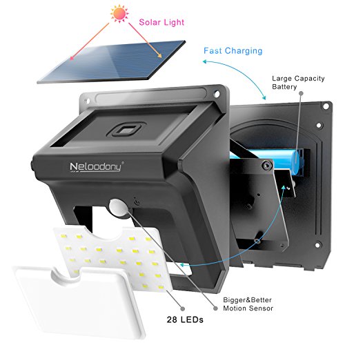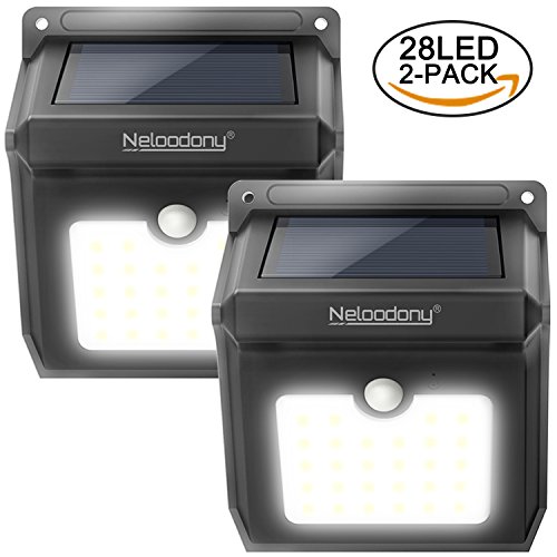 Neloodony Wireless Solar Motion Sensor Security Lights with 28 LEDs, Powerful Wall Safelight for Outdoors, Outside Wall, Garden, Patio, Yard, Pathway Waterproof ( Pack of 2)