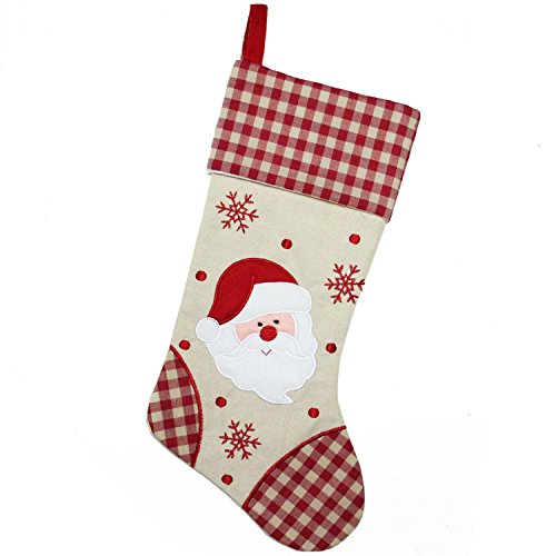 Northlight Burlap Embroidered Santa Claus Christmas Stocking with Red Gingham Cuff, 19", Brown