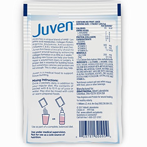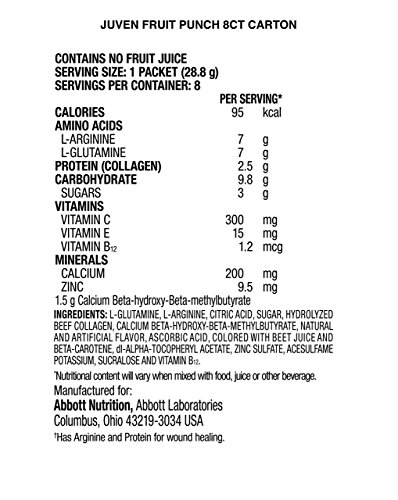 Juven Therapeutic Nutrition Drink Mix Powder for Wound Healing, Fruit Punch, 48 Count