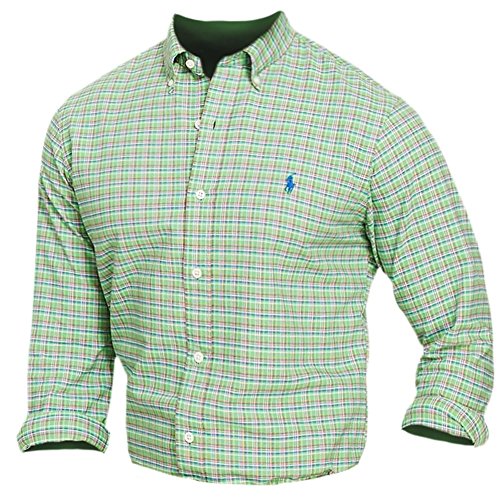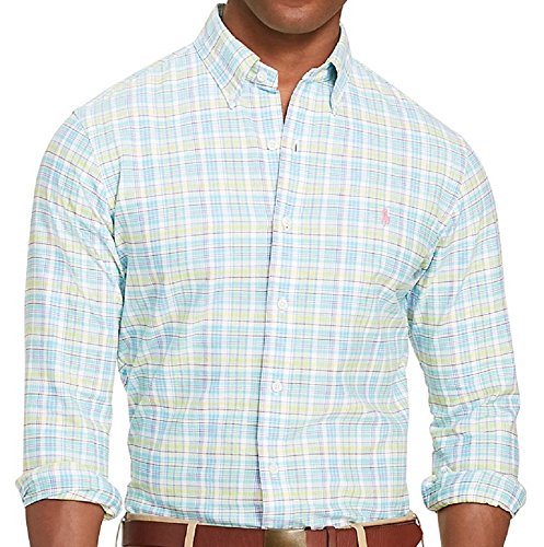 Polo Ralph Lauren Men's Checked Oxford Classic Fit Long Sleeve Button Down Shirt (Medium, Royal/Lime)