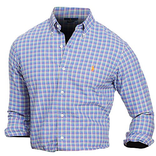 Polo Ralph Lauren Men's Checked Oxford Classic Fit Long Sleeve Button Down Shirt (Large, Maui Pink/Royal Multi)