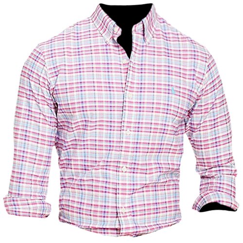Polo Ralph Lauren Men's Checked Oxford Classic Fit Long Sleeve Button Down Shirt (X-Small, Maui Pink/Royal Multi)