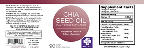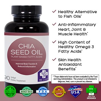Studio : MD.LIFE Publisher : MD.LIFE Binding : Health and Beauty Product Description Because our bodies do not produce Omega-3s naturally, we must get them from food sources. MD LIFETM Chia Seed Oil is a naturally extracted oil that contains high levels of the important Omega-3s Alpha-Linoleic Acid, Linoleic Acid, and Oleic Acid.